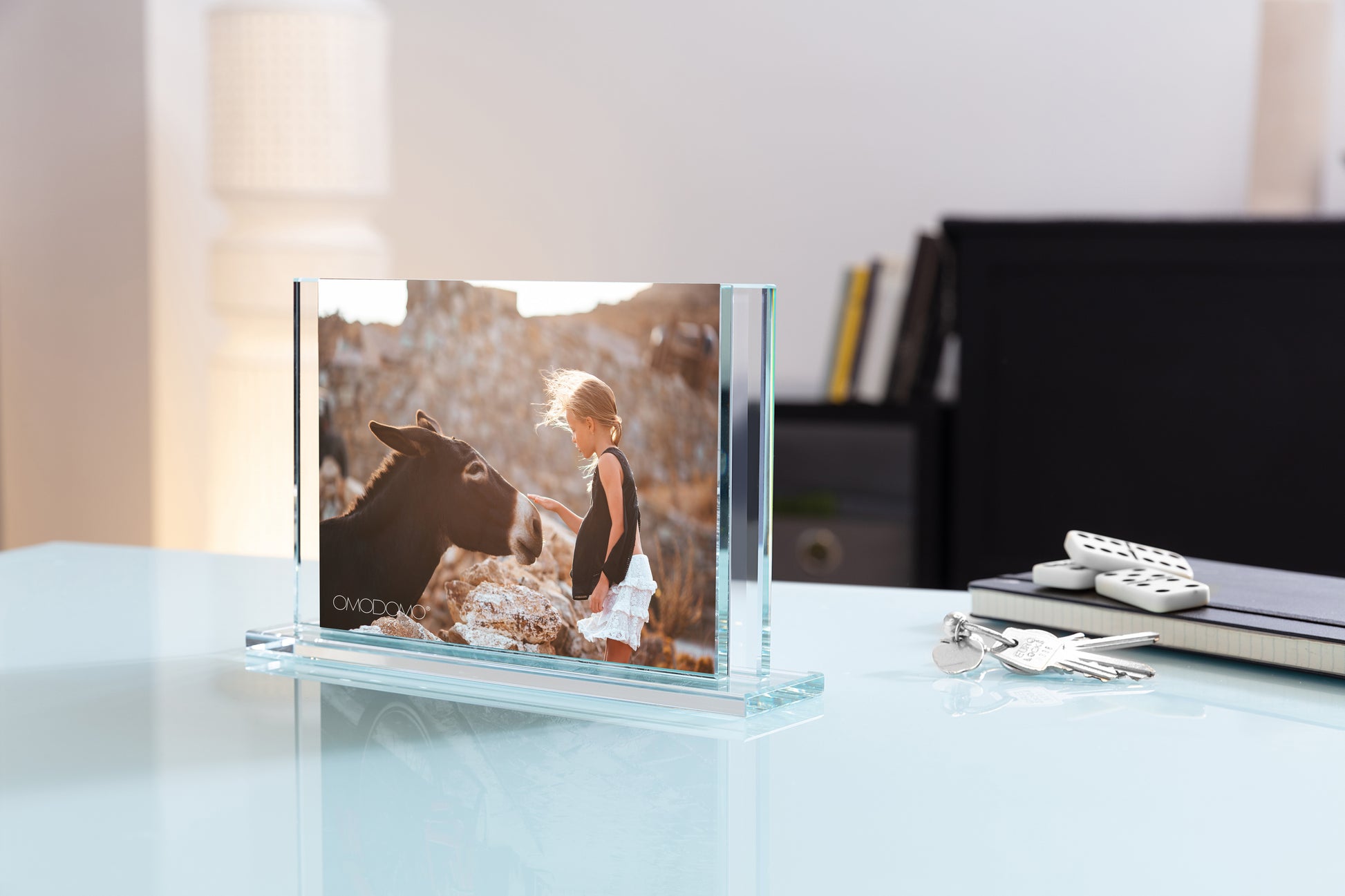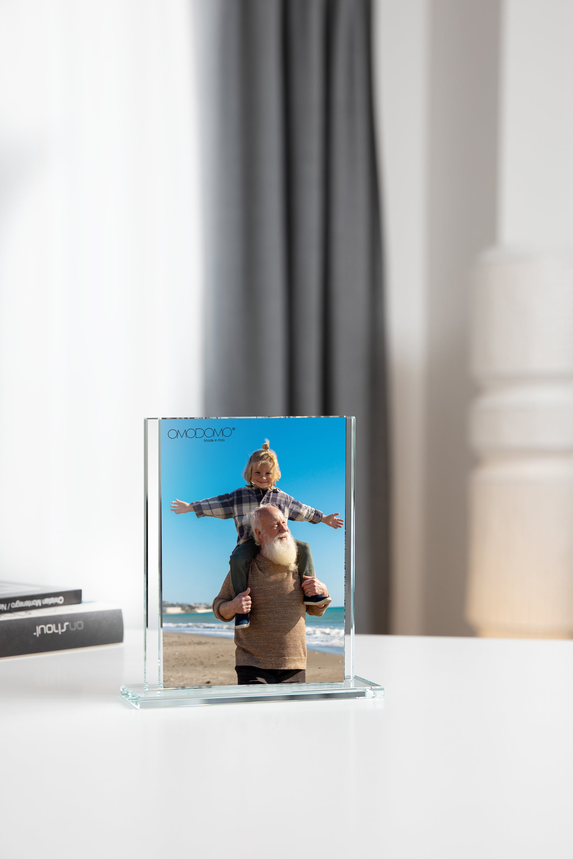 La trasparenza del materiale e la precisione della finitura creano un equilibrio perfetto tra leggerezza e solidità visiva. Ogni fotografia è sospesa nella luce, definita da contorni netti e da un’estetica pulita che valorizza ogni dettaglio.